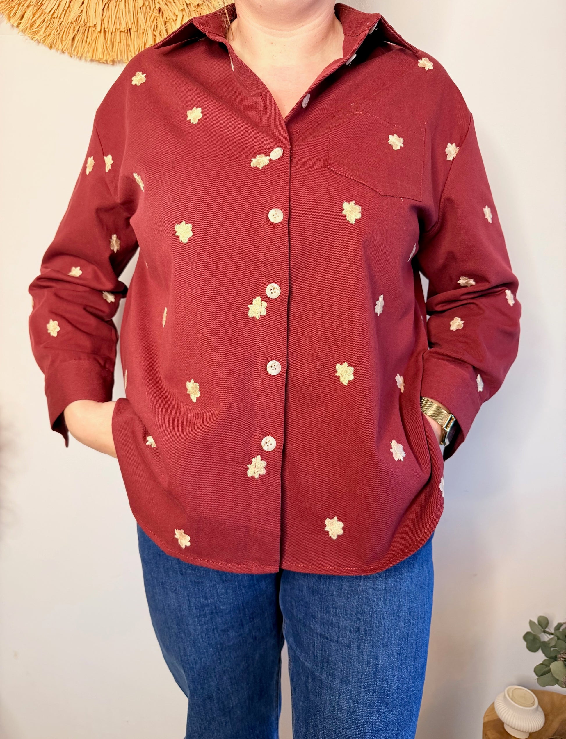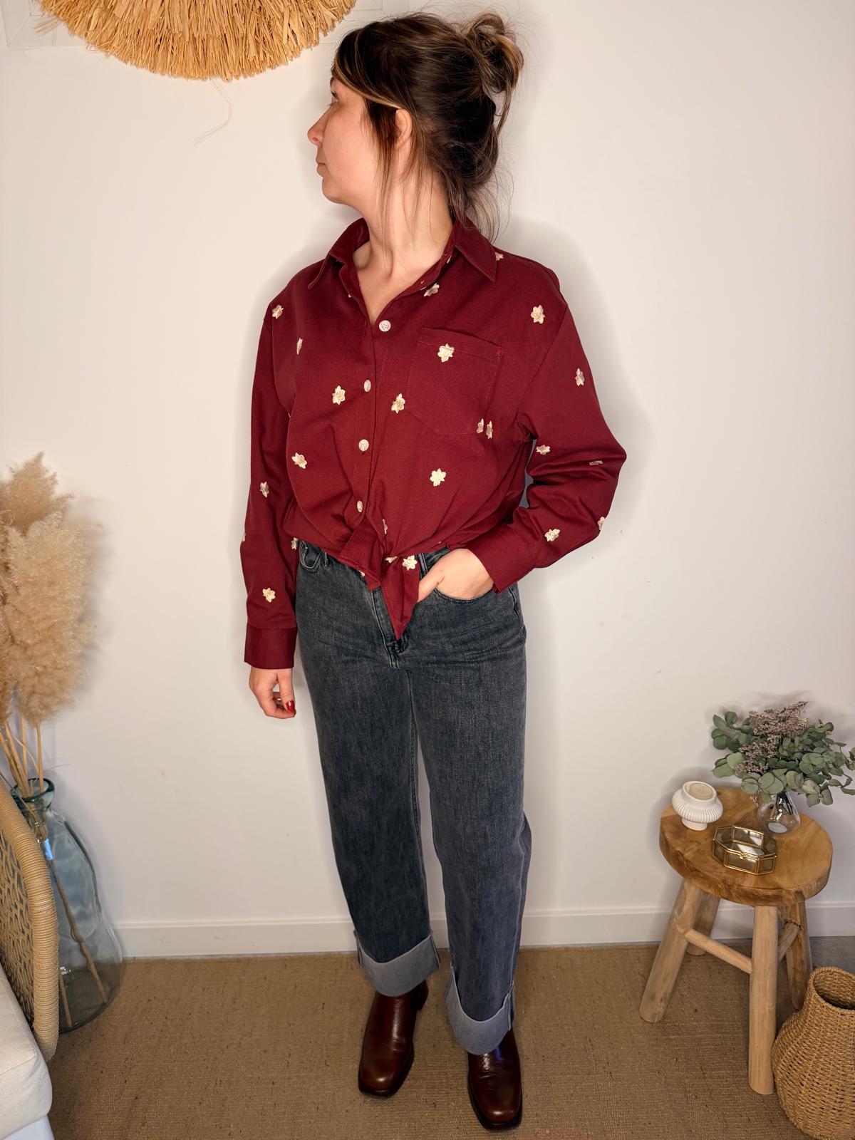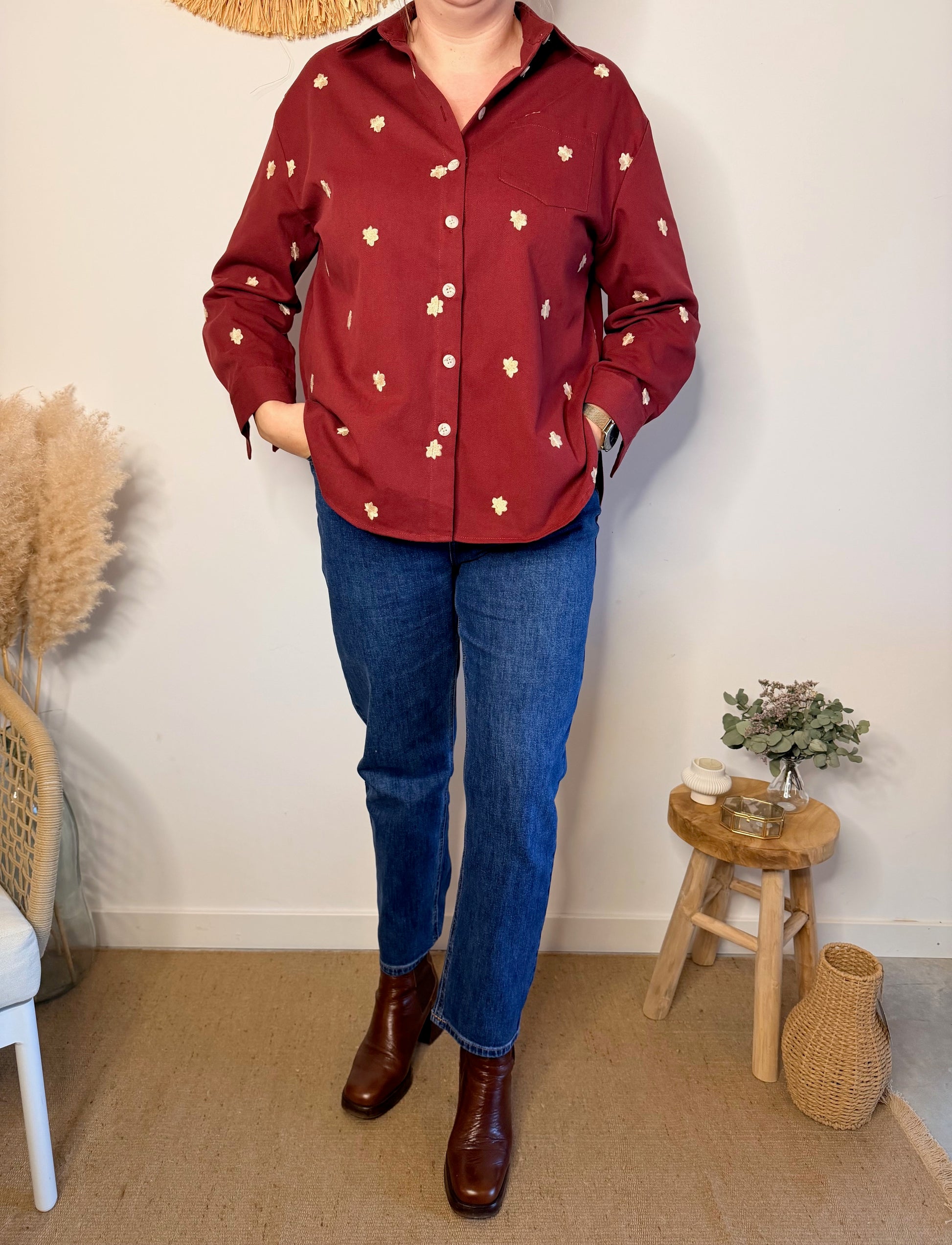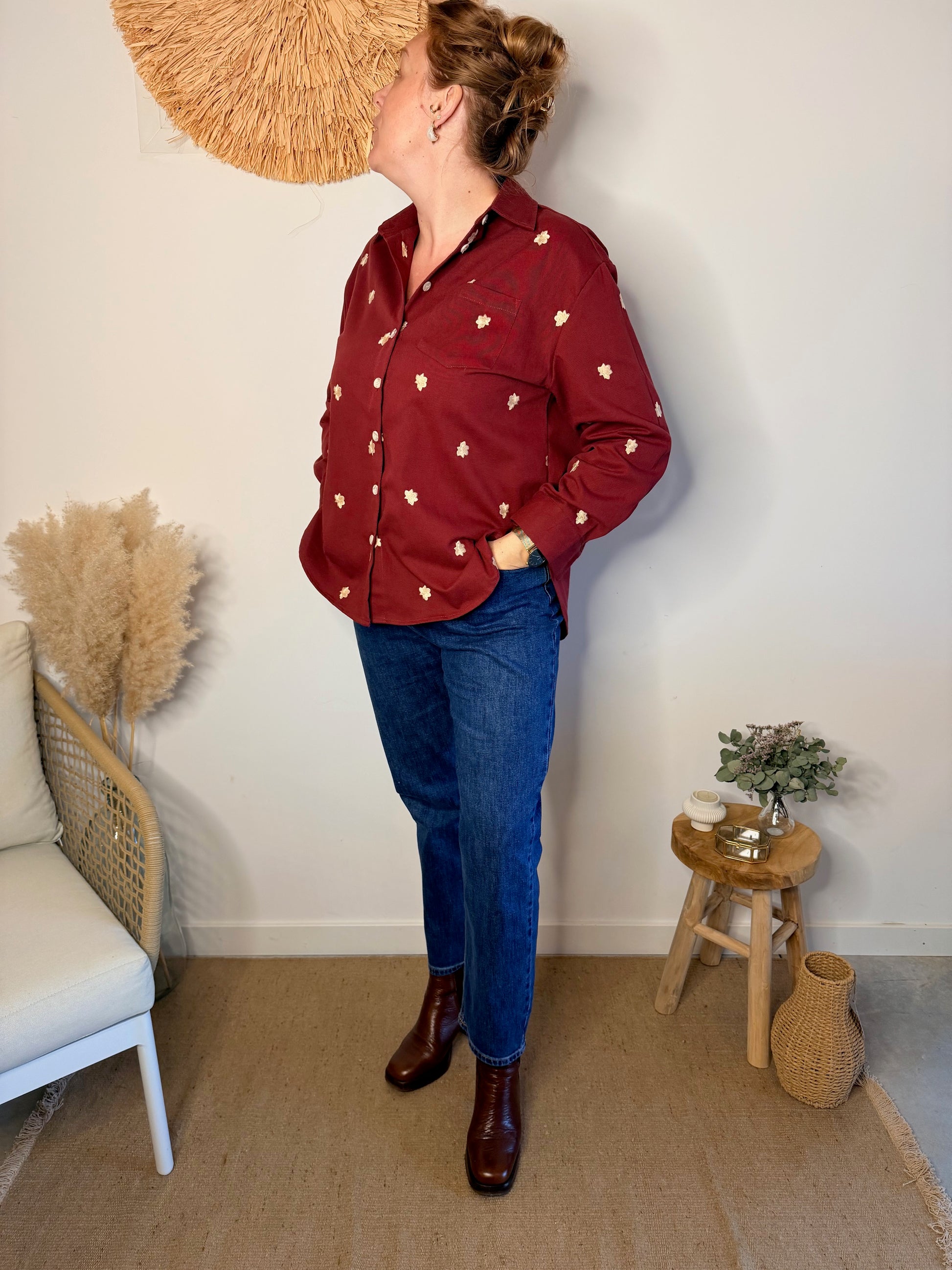 Craquez pour cette blouse oversize bordeaux aux jolis détails brodés, parfaite pour apporter une touche féminine à vos tenues du quotidien ✨