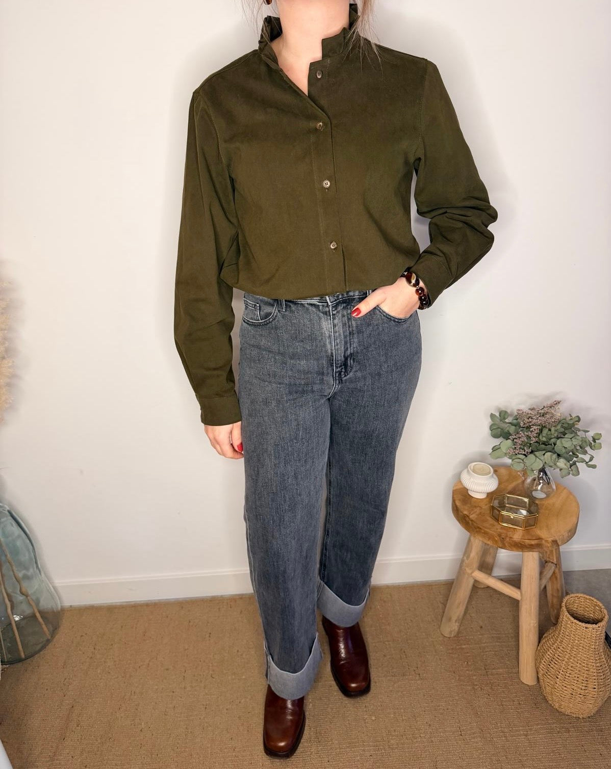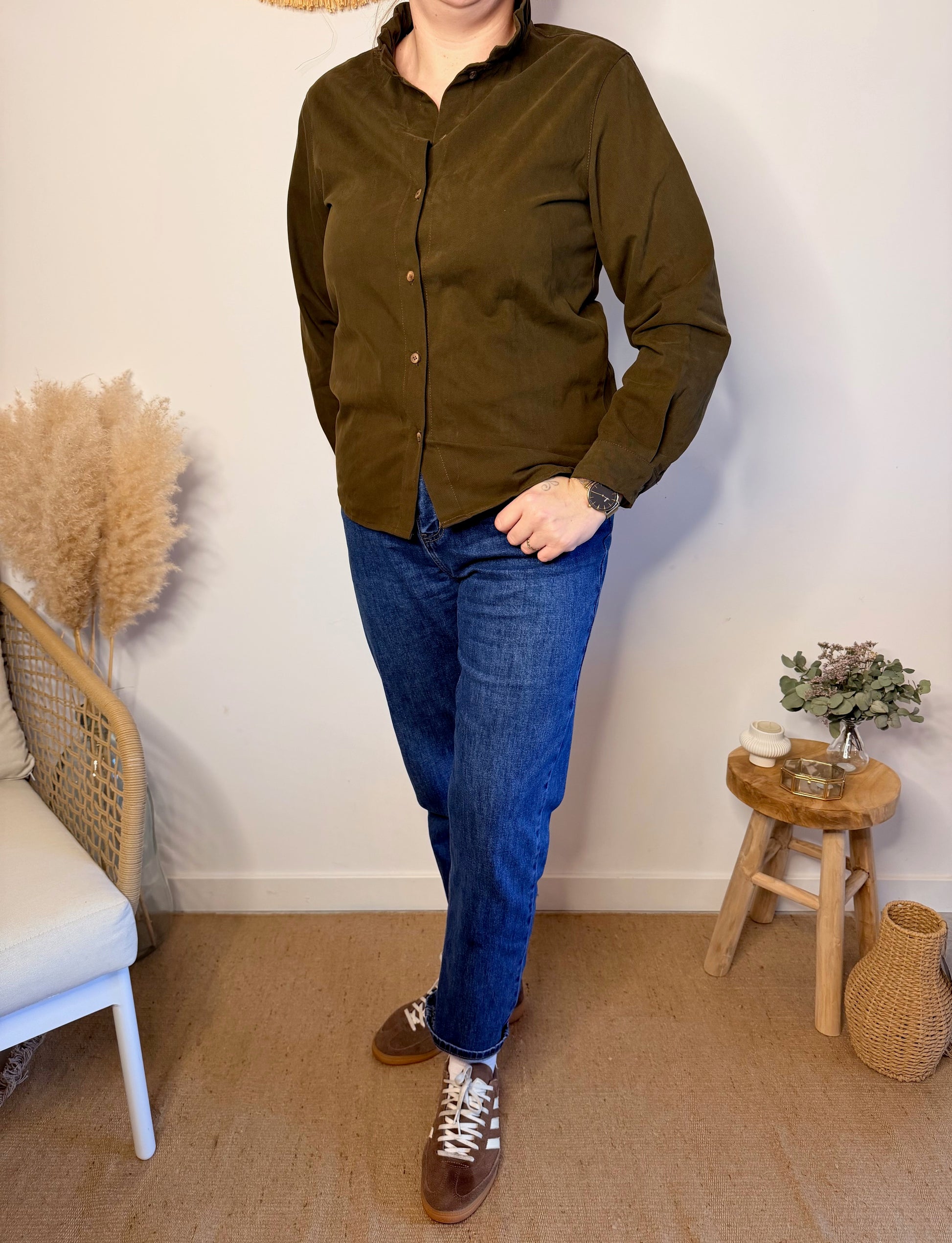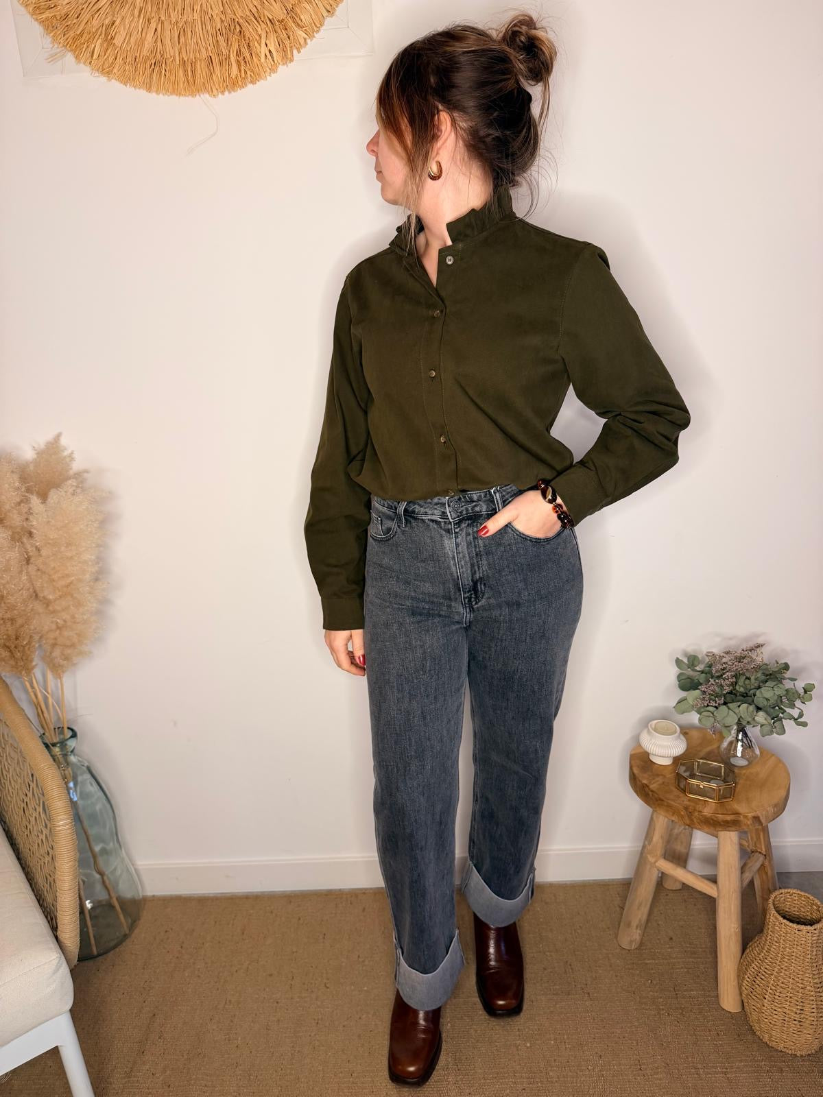 Craquez pour cette chemise kaki au style épuré et moderne, parfaite pour un look chic et décontracté.