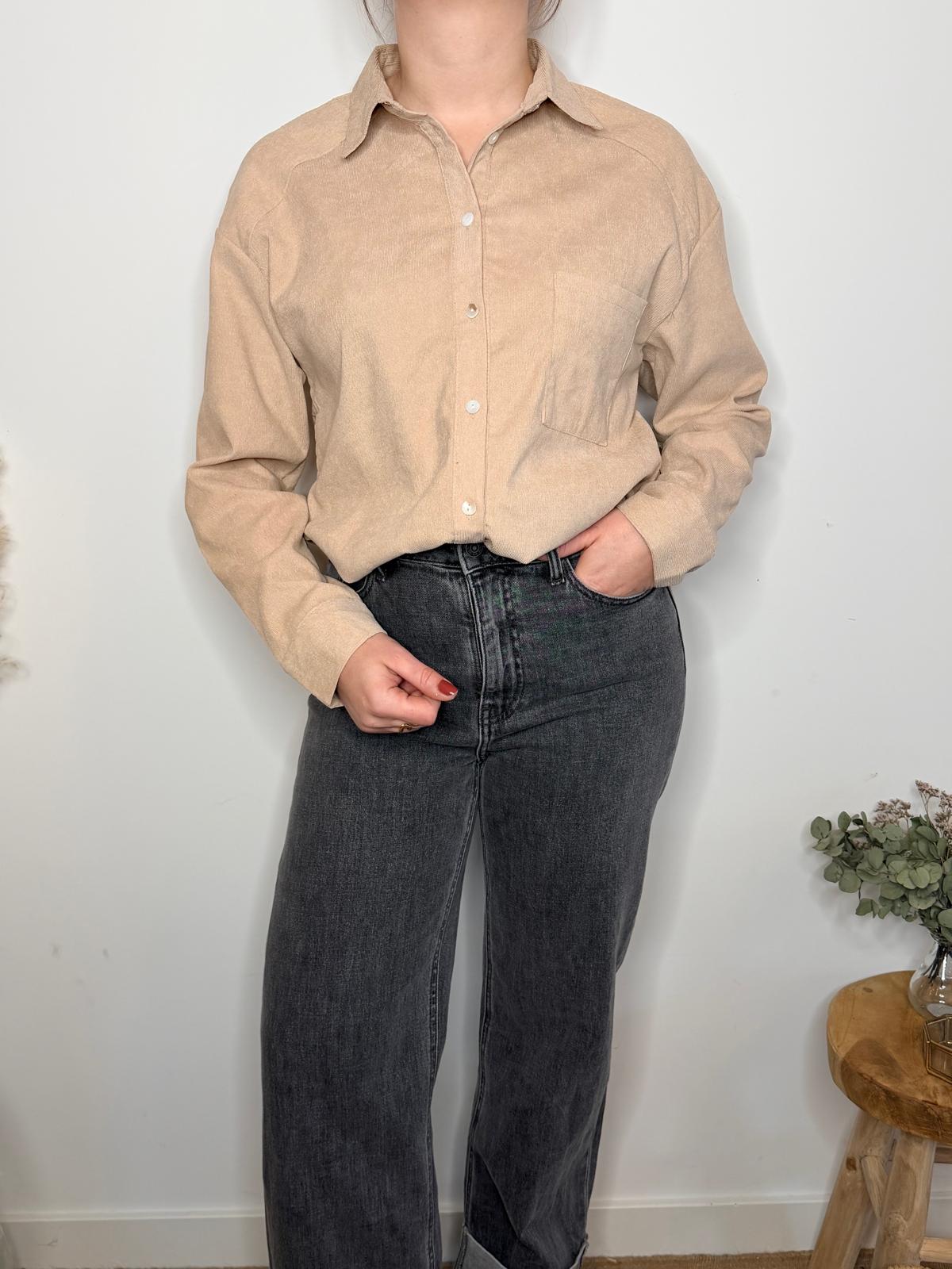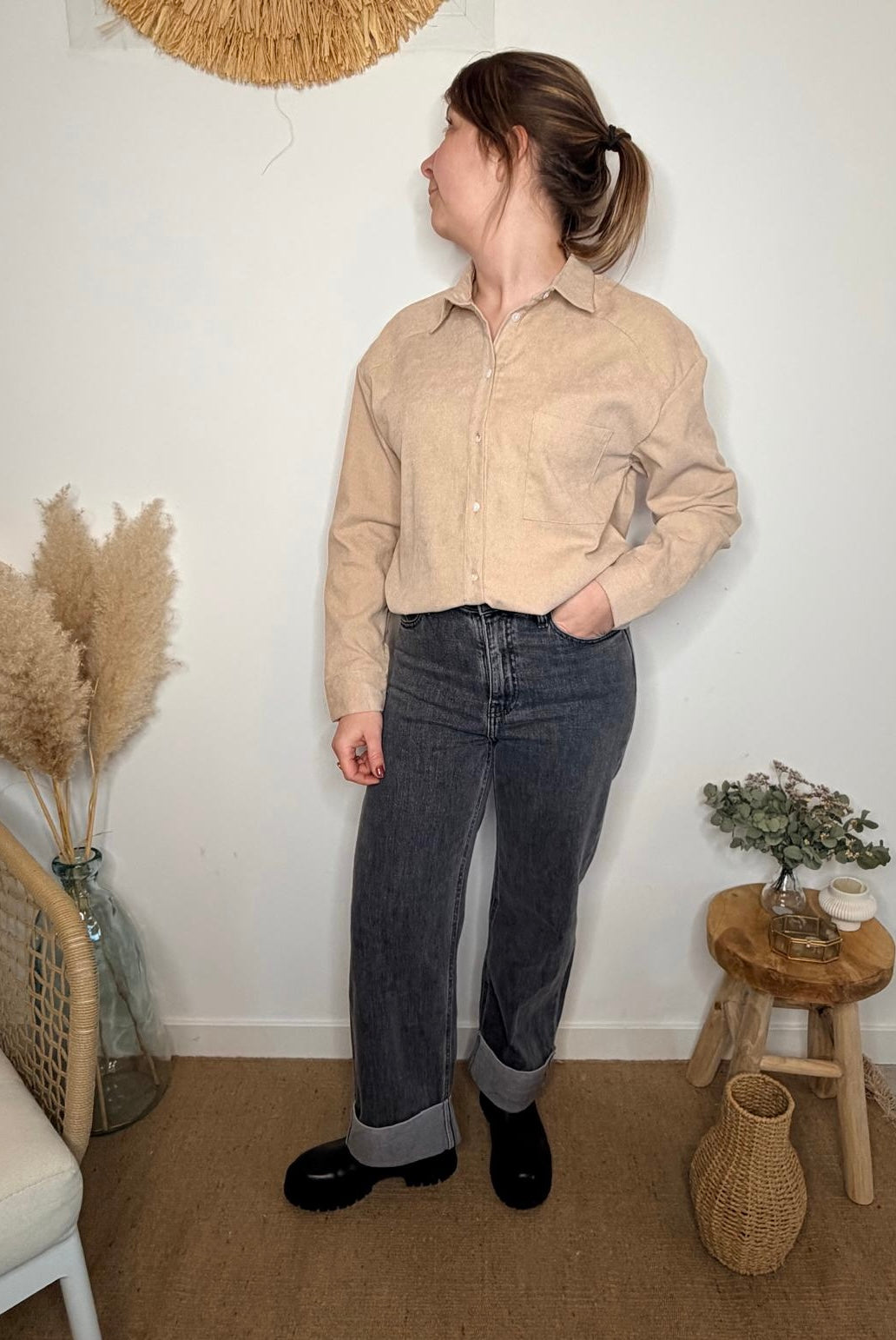 Intemporelle et facile à porter, cette chemise en velours beige séduit par son toucher doux et son allure naturellement élégante. Sa coupe droite légèrement ample offre un confort optimal tout en structurant la silhouette.
