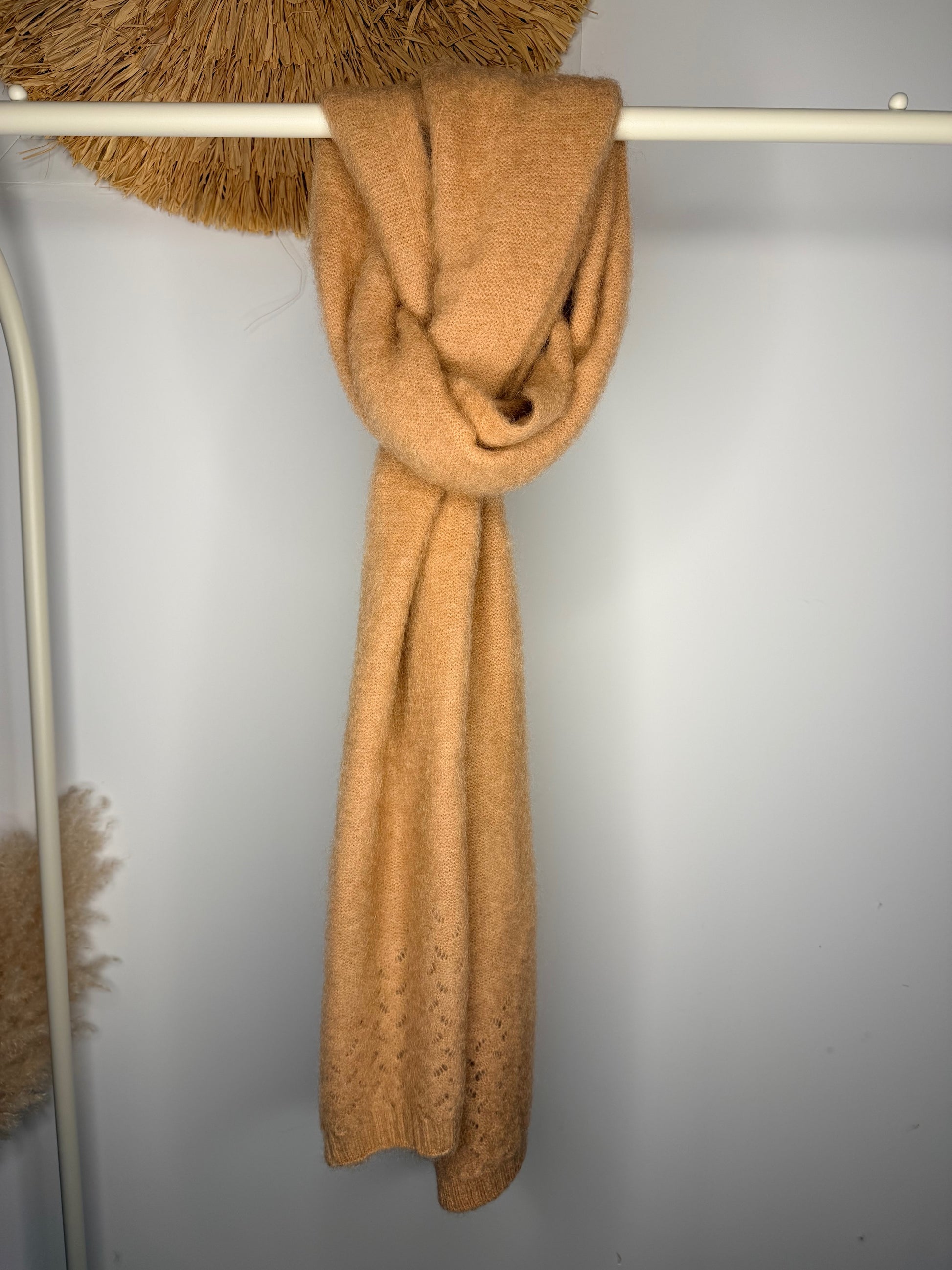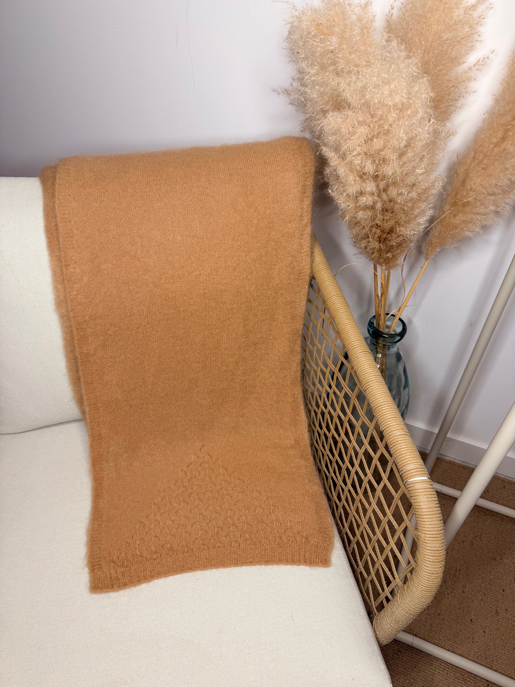 Apportez chaleur et élégance à vos tenues avec cette superbe écharpe en laine douce coloris camel 🤎