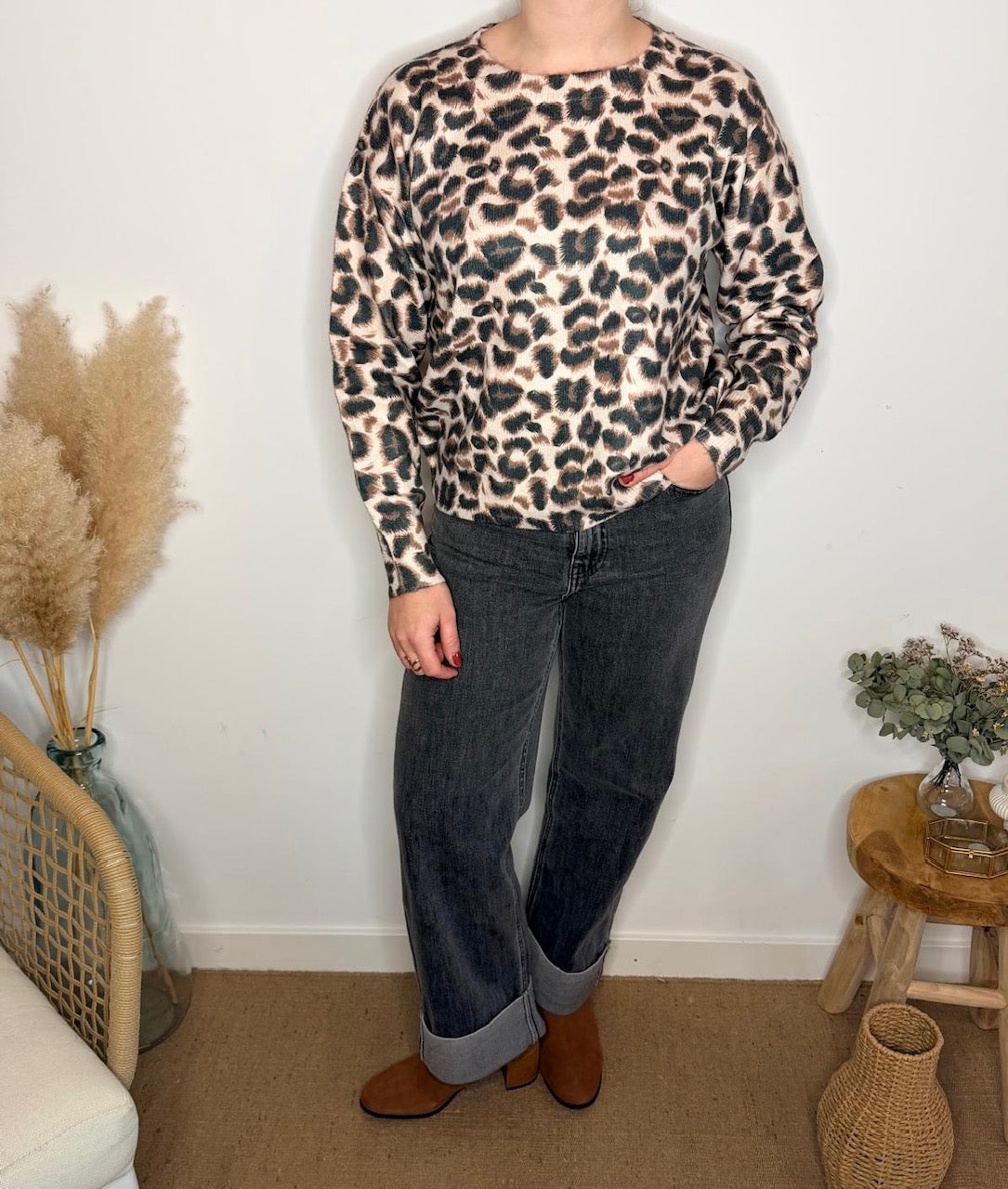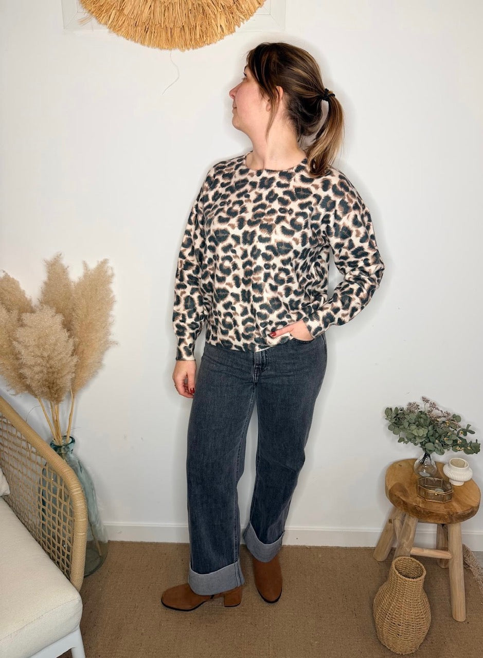 Sa coupe droite et son col rond en font une pièce simple et efficace, idéale pour un look casual chic au quotidien. L’imprimé léopard, intemporel et subtil, donne juste ce qu’il faut de caractère à vos tenues.